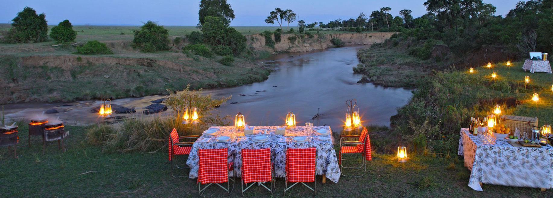 Enjoy a bush dining experience with an open-air breakfast on the banks of the Mara River or while looking out over a scenic view from the Oloololo Escarpment.