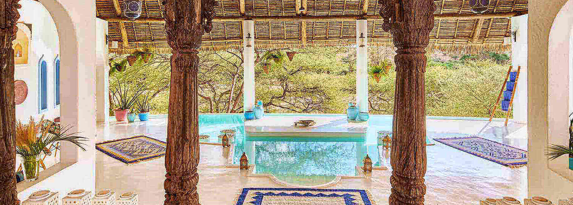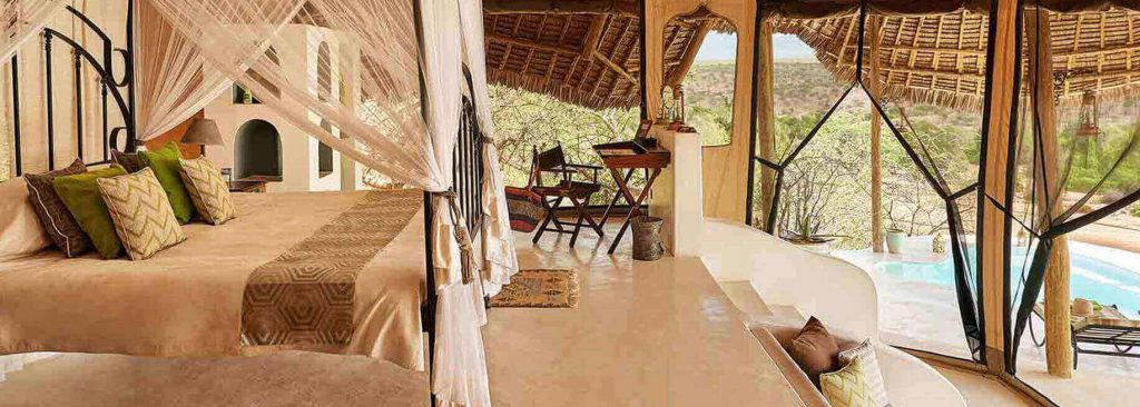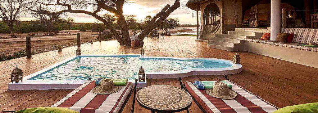 The architecture of Sasaab follows strong Moroccan design principles, in which African heat is of primary consideration. Each of the nine Moroccan-styled rooms is over 100m² with an enormous open-air bathroom and private plunge pool.