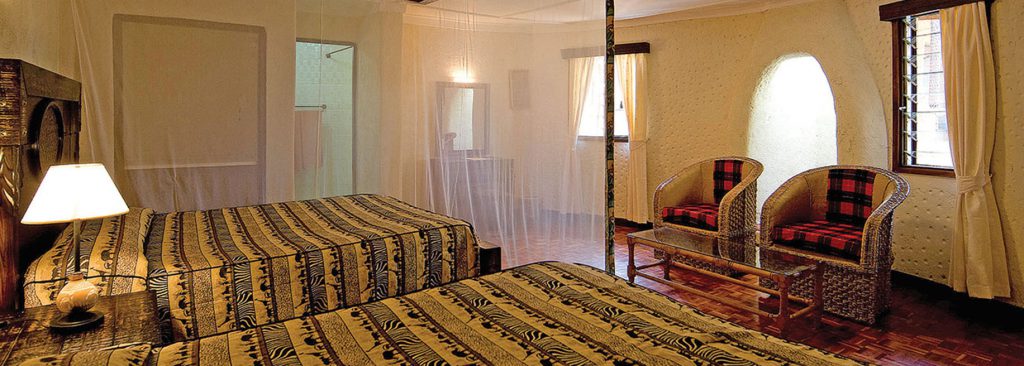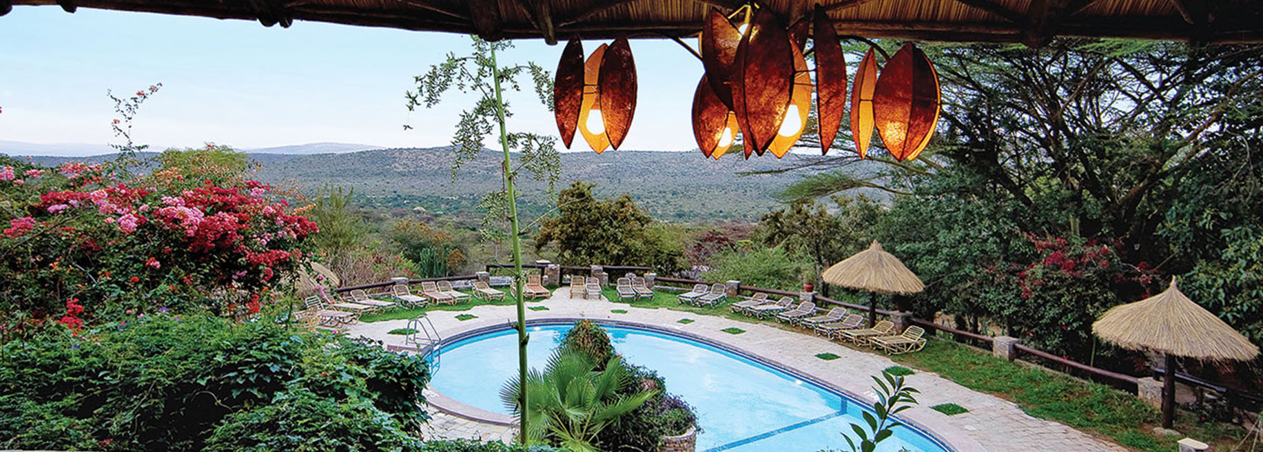 Located high on the slopes of the Oloolaimutia Hills, Masai Mara Sopa Lodge was one of the first safari lodges to be built in the Maasai Mara Game Reserve, a reason why its gardens and trees are so lush and mature. All the buildings follow the design of traditional African round houses with conical roofs and these stretch along the line of the hills with the impressively large public area buildings and the swimming pool at their centre.