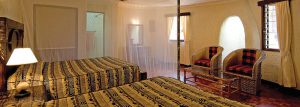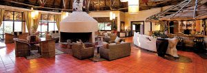 The lodge has fifty guest cottages divided into two wings to either side of the main public areas. Each of these houses has two spacious guest rooms with queen and king-size beds; mosquito nets; electronic safes; dressing tables; en-suite bathrooms and sheltered verandas that all have views over the gardens and the game reserve beyond.